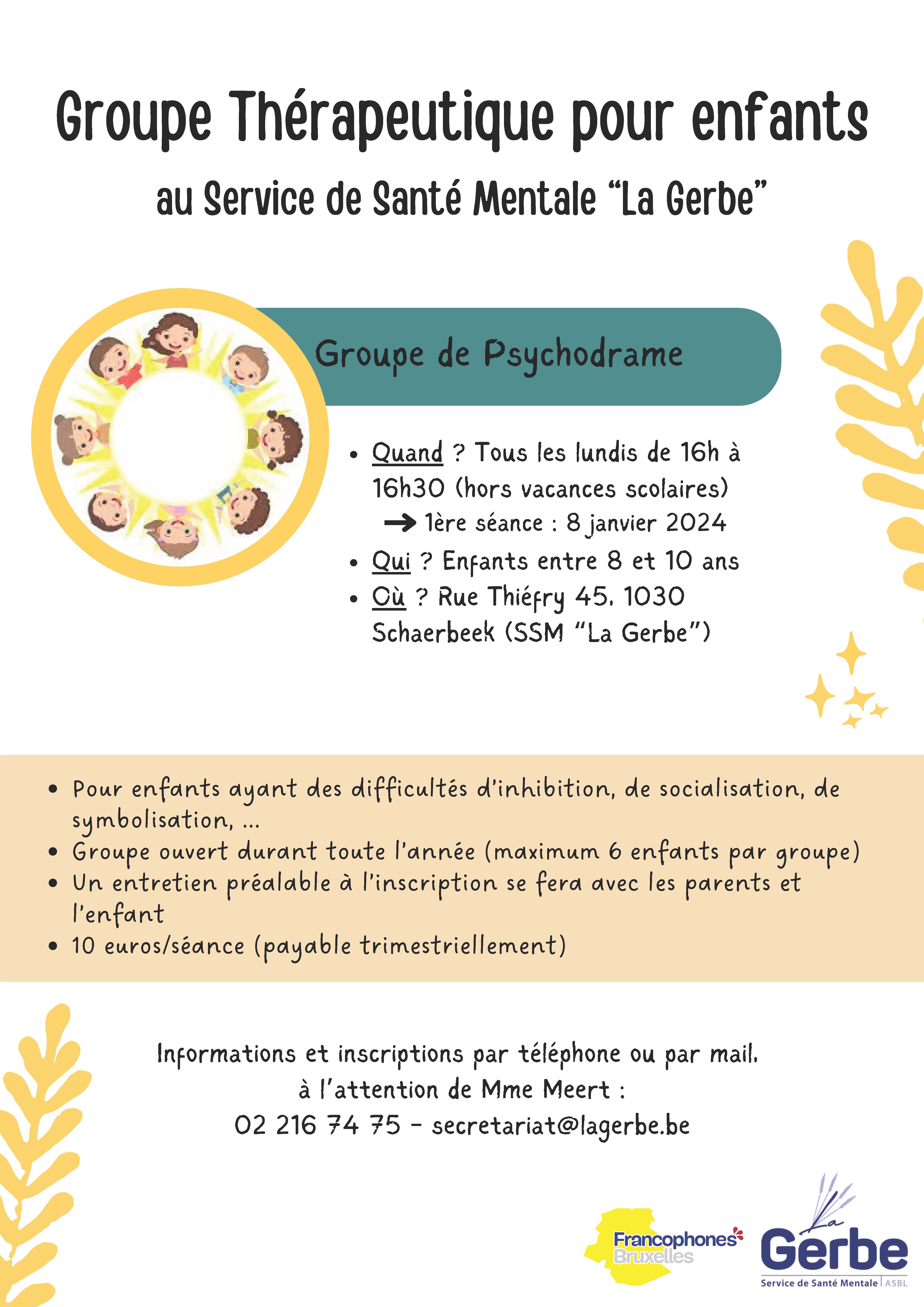 Groupe Thérapeutique pour enfants au Service de Santé Mentale « La Gerbe »