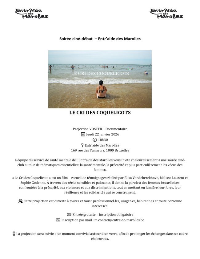 Dans cette dynamique de partage et de réflexion collective, nous avons le plaisir de vous inviter à une soirée ciné-club que nous organisons en fin de mois, autour de thématiques qui traversent nos pratiques quotidiennes : la santé mentale, la précarité et plus particulièrement les vécus des femmes.