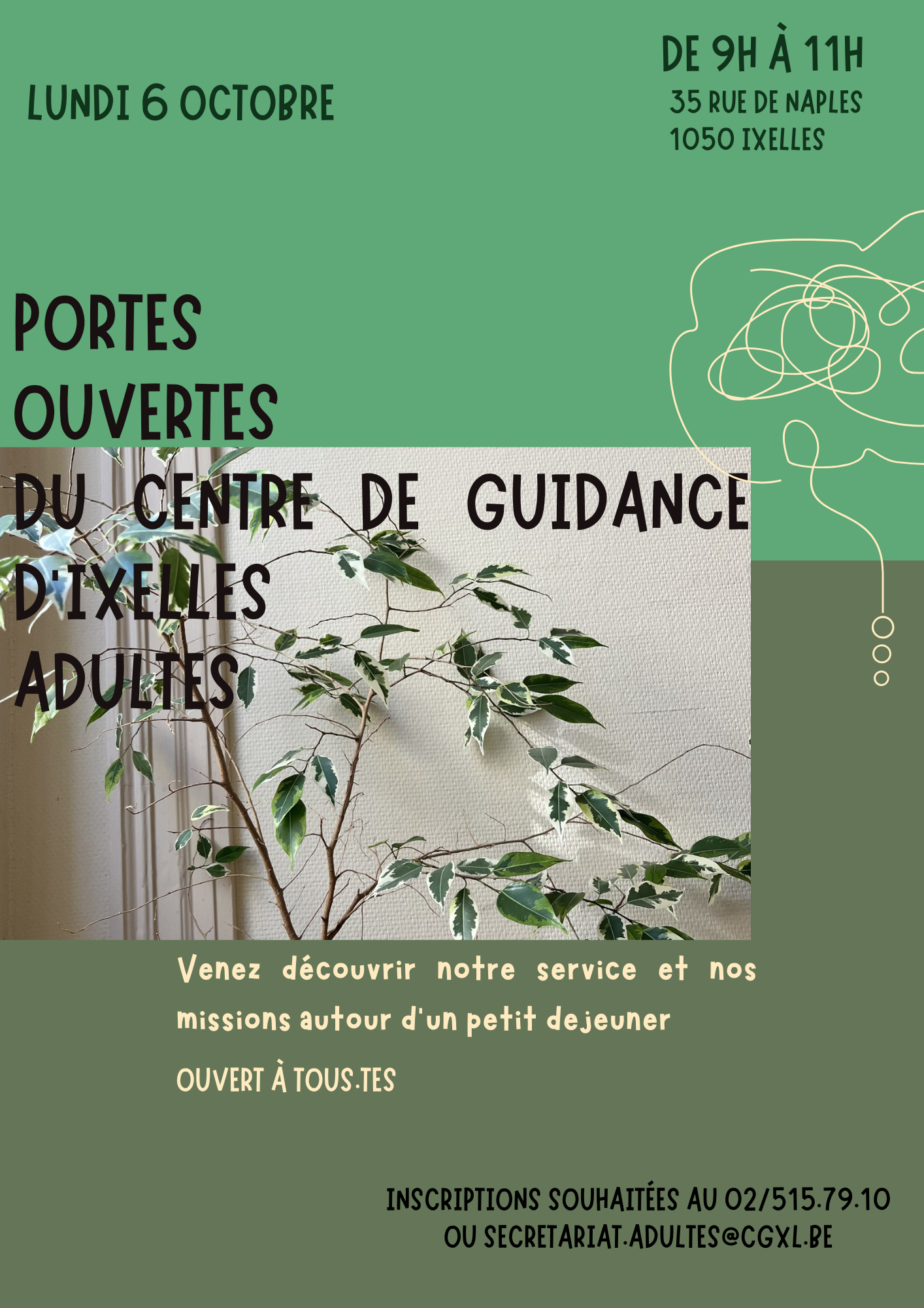 Dans le cadre de la Semaine de la Santé Mentale, le Centre de Guidance d’Ixelles Adultes organise une matinée Portes Ouvertes autour d’un petit déjeuner le lundi 6 octobre.