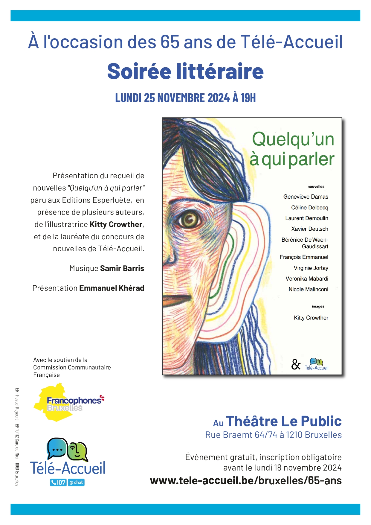 Vous êtes conviés à la soirée de présentation du livre « Quelqu’un à qui parler » au Théâtre le Public à Bruxelles.