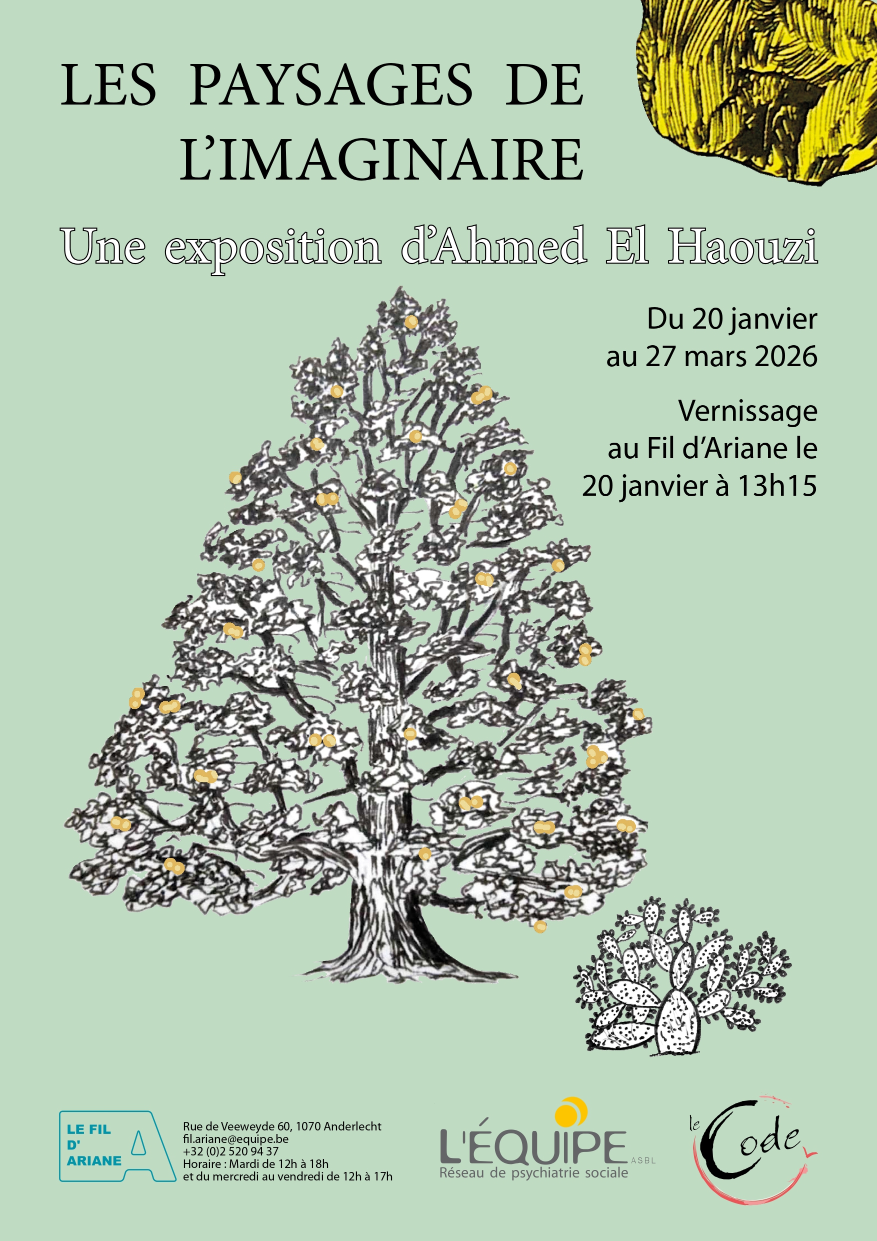 Bienvenus à l’exposition des œuvres d’Ahmed El Haouzi - Les paysages de l’imaginaire - qui se tiendra au Fil d’Ariane (60 rue de Veeweyde - 1070 Bruxelles)